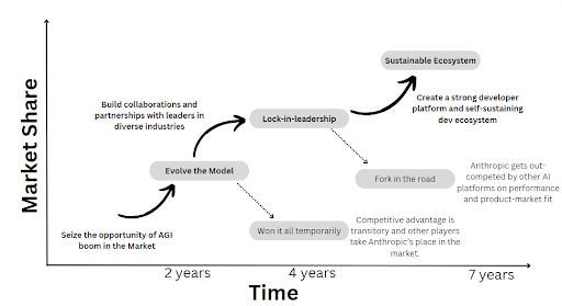 The next phase involves securing Anthropic’s leadership position, generating value, and strategically moving into an ecosystem while monetizing and capturing value. This comprehensive approach is about strengthening their position, providing outstanding benefits to stakeholders, and strategically moving into different areas while effectively taking advantage of new chances that come their way. It's also crucial that they expand the ecosystem while prioritizing sustainable growth.