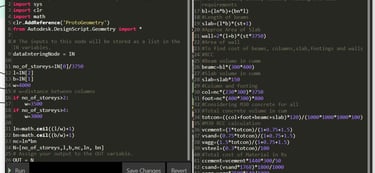 This list of output values was taken as the input in two Python Script nodes: 'Cost Estimation' and 'Total Floor Area'. The 'Total Floor Area' node was used to calculate the total floor area and this node was defined as an Output for the Generative Design study. The 'Cost Estimation' node was used to calculate the required lengths, areas and quantities of slabs, beams, columns, footing and walls. The rates for building materials was given and the final cost was obtained within the node.